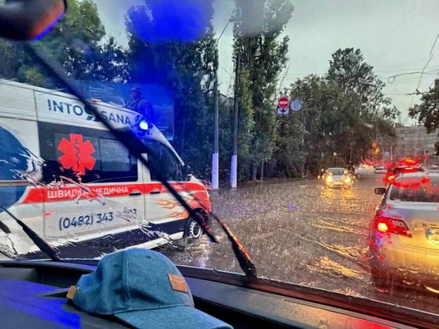 Вчера в Одессе во время аномального ливня затопило улицы на многих участках...