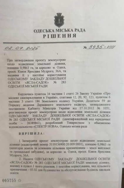 Директор департамента образования и науки Одесского городского совета Елена Буйневич сообщила, что панельное здание детского сада №283 начали сносить, потому что эксперты из комиссии признали его опасным. Но одесситов заверили, что на месте детского сада построят только новый детский сад. Землю под садик летом закрепили за садиком – это теперь земля образования.