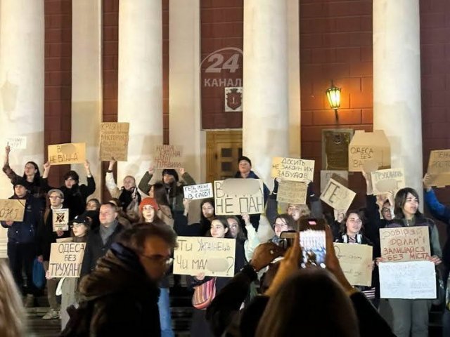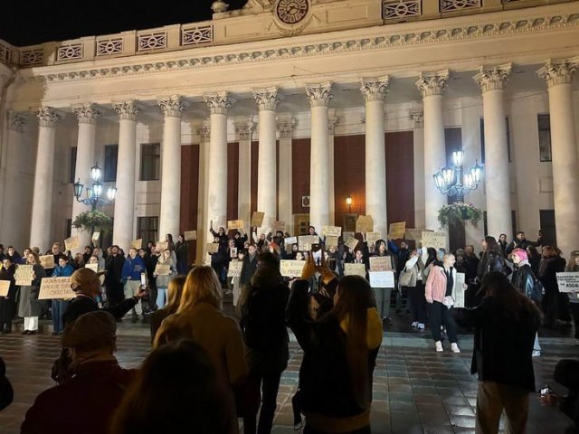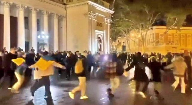 Вчера вечером после обнародования официальной информации о лишении гражданства эксмера Одессы Геннадия Труханова за скрытый российский паспорт на Биржевой площади собралось более 100 митингующих, преимущественно молодых людей, праздновавших это событие. Они сначала провели акцию в поддержку действий Президента по лишению гражданства Труханова – в руках держали транспаранты с призывами возбудить уголовные дела против Труханова и довести до конца уже открытые, обменять Труханова на пленных.