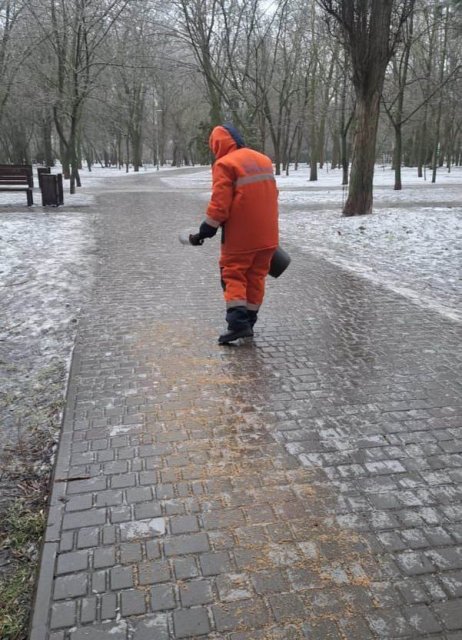 Сегодня 26 января в Одессе на дорогах и тротуарах образовалась ледяная корка. В Одесской мэрии сообщили, что на улицы вышли утром 1600 работников коммунальных служб, которые посыпают тротуары песком и спасают от гололеда. КП «Городские дороги» использовано 502 тонны песчано-солевой смеси. На дорогах работают 49 единиц спецтехники предприятия.