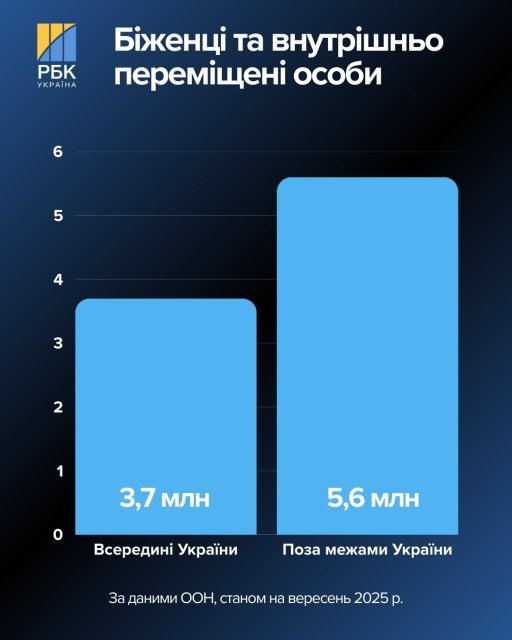 Кількість українських біженців та ВПО (Інфографіка РБК-Україна)