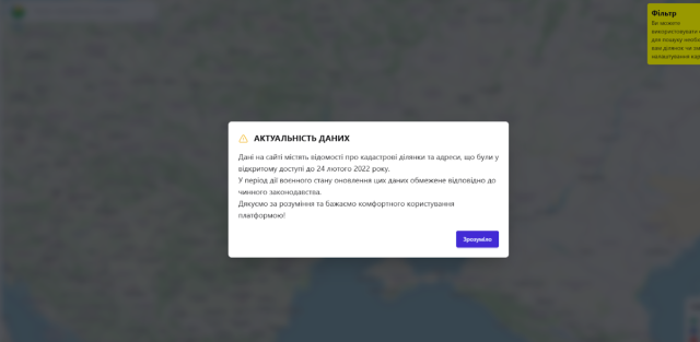 До повномасштабного вторгнення, будь-який громадянин мав можливість відкрити Публічну кадастрову карту земельних ділянок, яка підтримується Державною службою з питань геодезії, картографії та кадастру (Держгеокадастром), обрати на ній незайняту ділянку і звернутися до органів місцевої влади із заявою про її приватизацію. З початку війни, ця карта – закрита, а її доступні онлайн-версії «завмерли» станом на 24 лютого 2022 року.