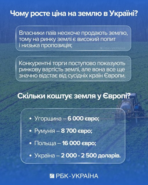 Потенціал для подальшого зростання ціни залишається досить значним. Якщо середня ціна землі в Україні становить 2 200 – 2 500 доларів за гектар, то в сусідній Польщі вона складає більше 16 тисяч євро, Румунії – 8 700 євро та Угорщині – близько 6 000 євро за гектар, свідчать дані KupyPay.