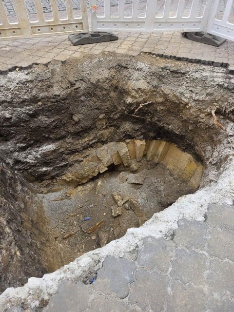 В Одессе на Дерибасовской во время раскопок тротуара коммунальными службами был обнаружен старинный культурный слой — цилиндрический свод на глубине около 1 метра. На находку обратил внимание одесский бизнесмен Дмитрий Казавчинский — он опубликовал фото в Фейсбуке с призывом не засыпать и забыть, а дать возможность специалистам обследовать подземный ход.