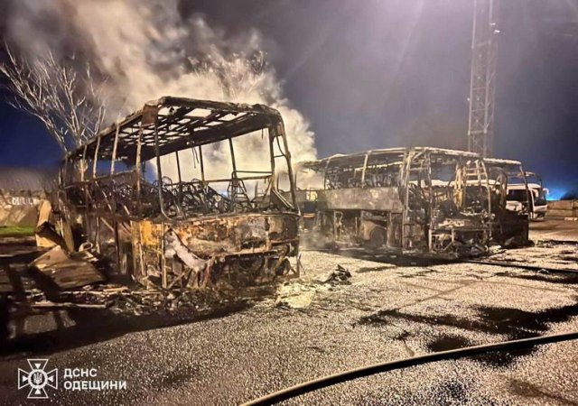 Минувшей ночью 18 апреля под Одессой российские беспилотники атаковали гражданские объекты. Как сообщили в Одесской ОВА и ГСЧС, поражены административные здания, складские помещения с зерном, стоянка автобусов и грузовых автомобилей. В результате взрывов начались пожары, сгорел автотранспорт. По предварительной информации, пострадал один человек.