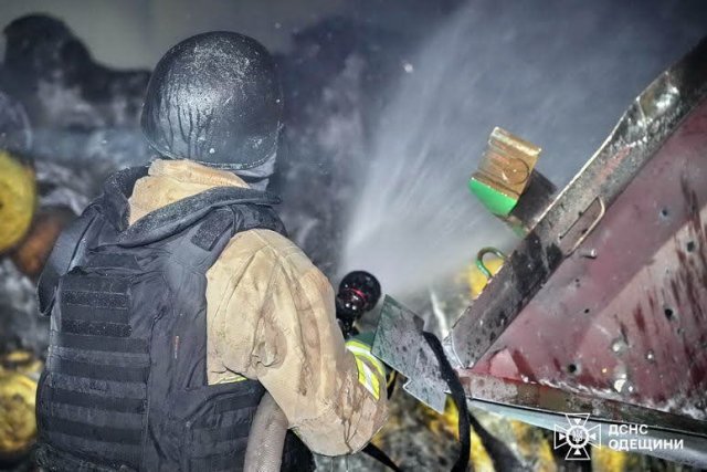 Минувшей ночью 22 апреля враг продолжил террористические атаки по гражданской инфраструктуре Одессы и Одесской области. Почти всю ночь до самого утра доносилась воздушная тревога — более 30 российских дронов типа «шахед» и «гербера» волнами атаковали портовую инфраструктуру. Как сообщили в Одесской ОВА, погибших и пострадавших нет. На опубликованных кадрах можно увидеть поврежденные склады со строительными материалами, где произошли пожары после ушибов. Пожарные совместно с пожарной охраной порта оперативно ликвидировали все очаги огня.