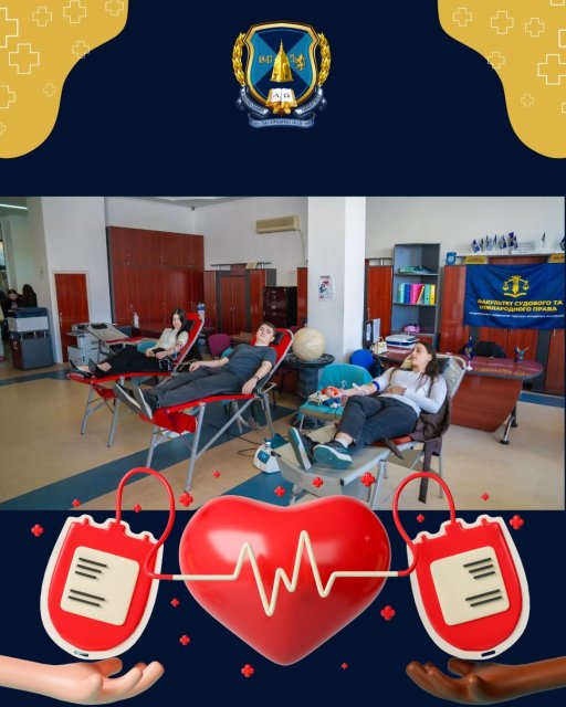 За рішенням Вченої ради кожен факультет Університету щотижня організовує донорські дні. Під час таких акцій колектив здає понад 240 літрів щомісяця. Лише цього місяця до донорства вже долучилися факультет судового та міжнародного права, факультет прокуратури та слідства, а також факультет кібербезпеки та інформаційних технологій. Наступна здача крові відбудеться 27 квітня на факультеті адвокатури та антикорупційної діяльності.