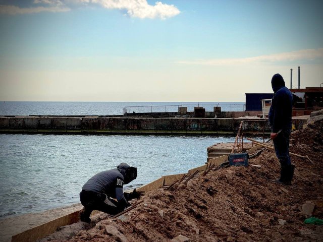 На 16-й станції Великого Фонтану продовжуються роботи з реалізації першої черги благоустрою набережної в межах узбережжя від Ланжерону до Золотого берега. Роботи виконуються за позабюджетні кошти, передає пресслужба міськради.