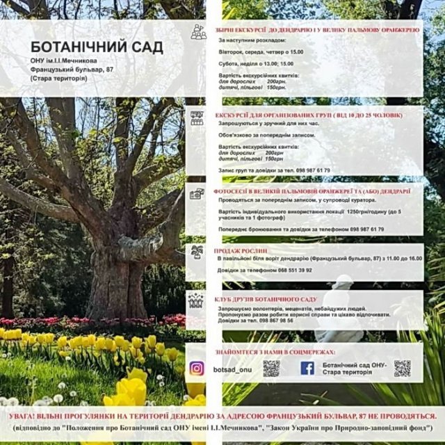 Также в Ботаническом саду по адресу Французский бульвар, 87 объявили о начале экскурсий в дендрарию, пальмовую оранжерею и сезон фотосессий.