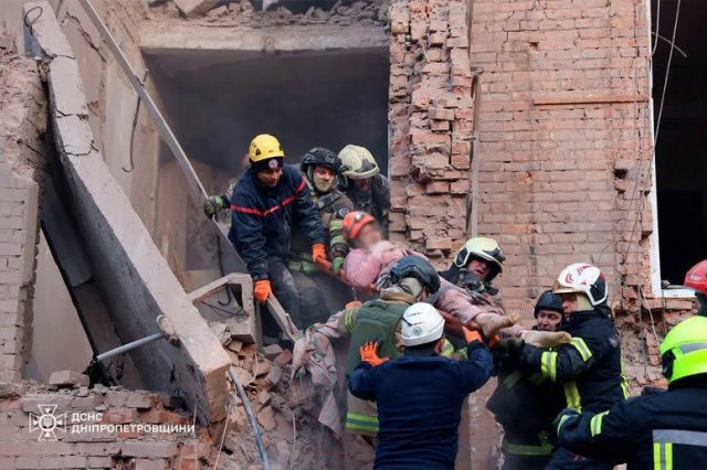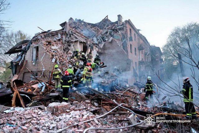Россия массированно атаковала ночью 25 апреля мирный город Днепр ударными дронами, крылатыми и баллистическими ракетами. Атака продолжалась всю ночь и продолжилась утром. Террористические удары рашистов разрушили два многоквартирных дома в одном районе города. По состоянию на 12:00 под завалами обнаружили тела 3 погибших. По предварительным данным, 22 человека пострадали, среди них — ребенок. В городе идет поисково-спасательная операция, под завалами могут находиться люди.