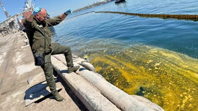 После ночных атак 26 апреля по порту Черноморск произошло разрушение одной емкости с подсолнечным маслом, сообщили в Государственной экологической инспекции Юго-Западного округа. По предварительным расчетам, произошел разлив около 6000 тонн масла. В акватории порта наблюдается характерное загрязнение размерами 400 на 200 метров.